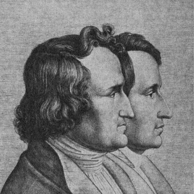 Die Rede ist hier natürlich von Jakob und Wilhelm Grimm, welche vor allem für die „Kinder- und Hausmärchen“ bekannt sind. Sie waren Sprachwissenschaftler und Volkskundler und lebten im 18./19. Jahrhundert, in der Kunsthistorischen Epoche der Romantik, bzw. des Biedermeier.